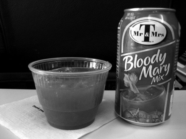 Right now, I sit within a plane. One of the few possibly remaining trips I shall take within the bounds of the company to which I currently prostitute my time. And shamelessly, boundlessly, free – I just asked for two cans of bloody mary mix.